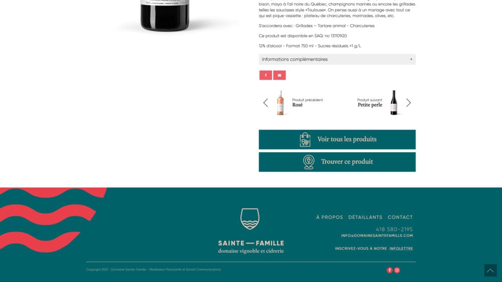 Explorer l'univers des divers produits et services offerts par le domaine Vignoble Sainte-Famille. Pour trouver ce que vous cherchez rapidement, n'oubliez pas d'utiliser les filtres par catégories ou par gammes de prix disponibles dans la section boutique (catalogue) du site.